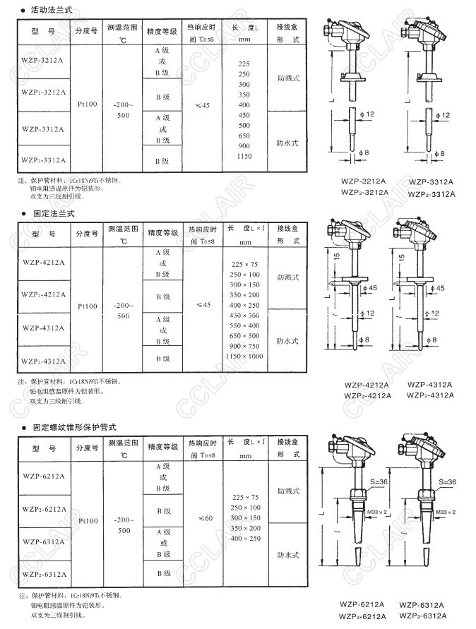 WZP-3212A,WZP2-3312A,WZP2-4212A,WZP-4312A,WZP2-6312A,WZPK,鎧裝裝配式鉑電阻