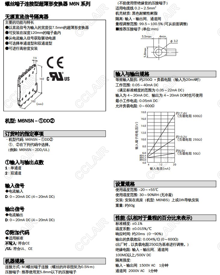 M6NSN-1DD,M6NSN-2DD,M6NSN-1DD/UL,M6NSN-2DD/UL,M6NSN,無(wú)源直流信號(hào)隔離器