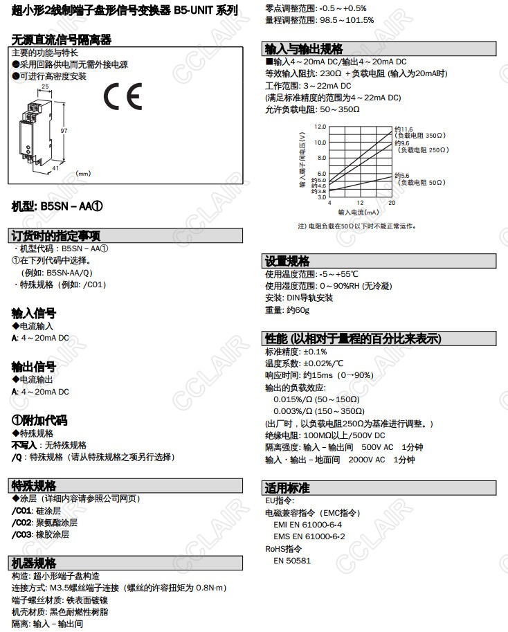 B5SN-AA,B5SN-AA/Q,B5SN,無源直流信號隔離器