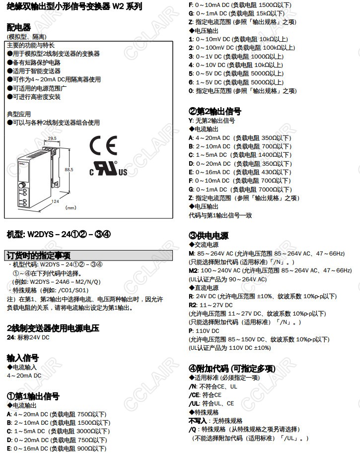 W2DYS-24AA-R,W2DYS-24A6-M2,W2DYS-24A6-M2/N,W2DYS-24A6-M2Q,W2DYS,信號隔離變換器