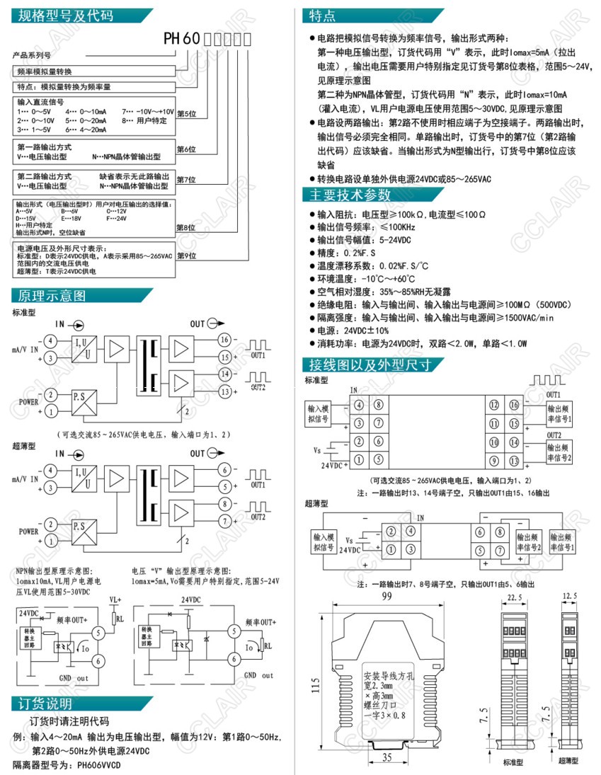 PH601,PH602,PH603,PH604,PH605,PH606,PH607,PH606VVCD,PH-60,模擬量轉(zhuǎn)頻隔離器