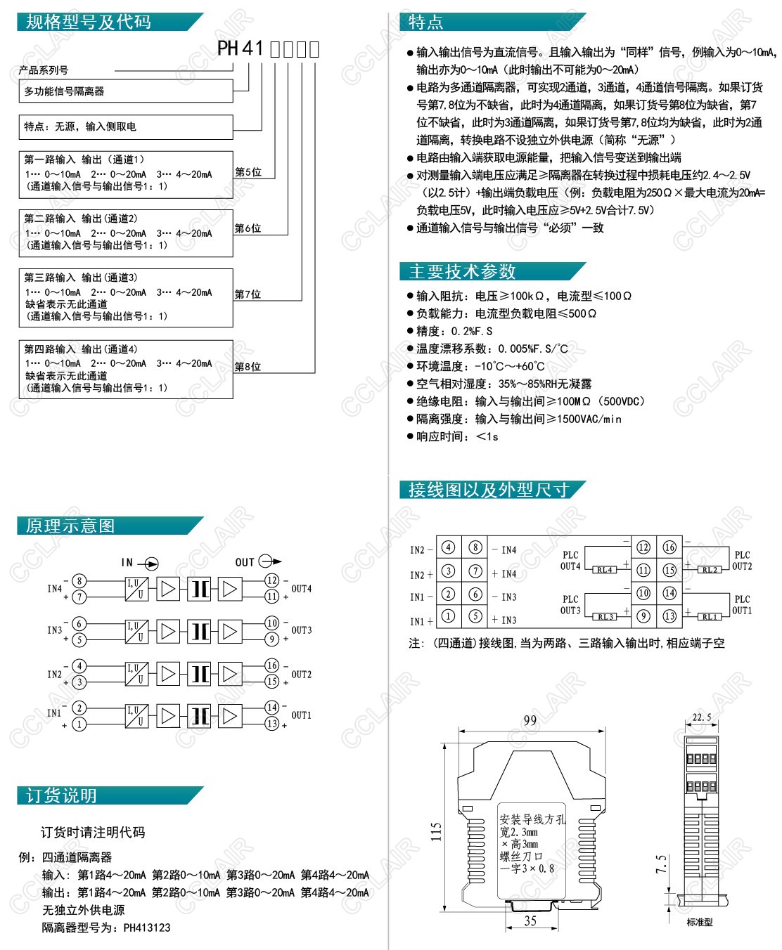 PH411123,PH412113,PH412331,PH413321,PH-413123,PH-41,無源直流型多通道信號隔離器