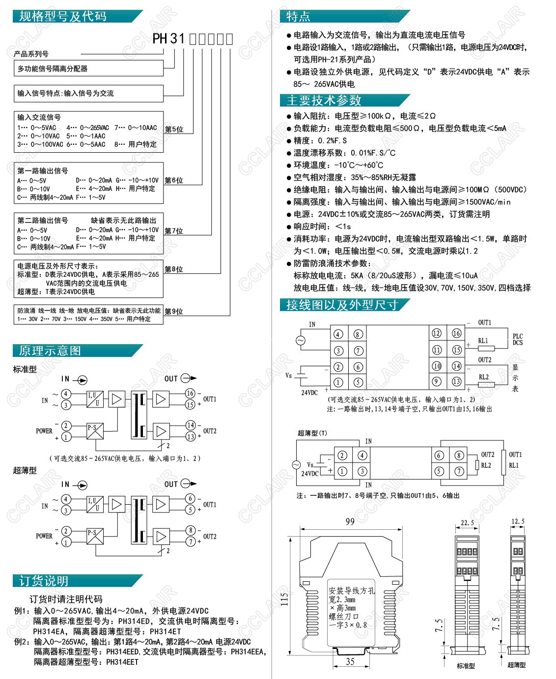 PPH-311,PH-312,PH-313,PH-315,PH-316,H-314ED,PH-314EA,PH-314ET,PH-31,交流型信號(hào)隔離器
