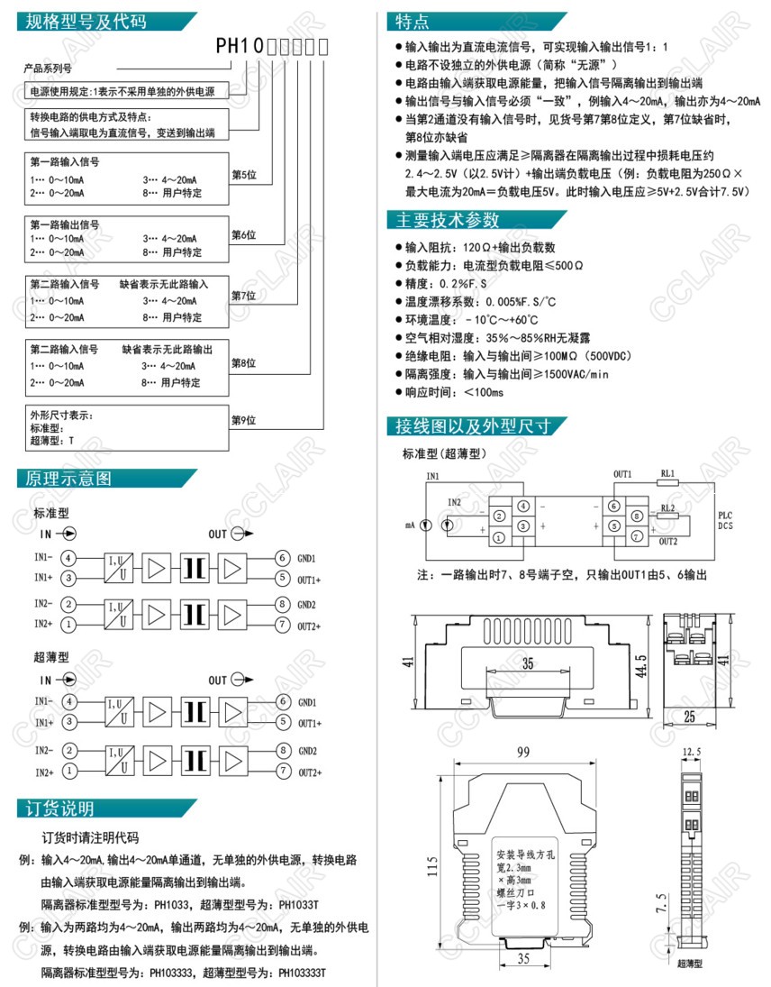 PH1033,PH103333,PH1033T,PH103333T,PH-1033,PH-103333,PH-10,無(wú)源直流電流型信號(hào)隔離器