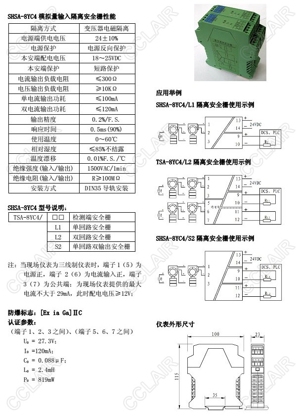 SHSA-8YC4/L1,SHSA-8YC4/L2,SHSA-8YC4/S2,SHSA-8YC4,模擬量輸入型隔離安全柵