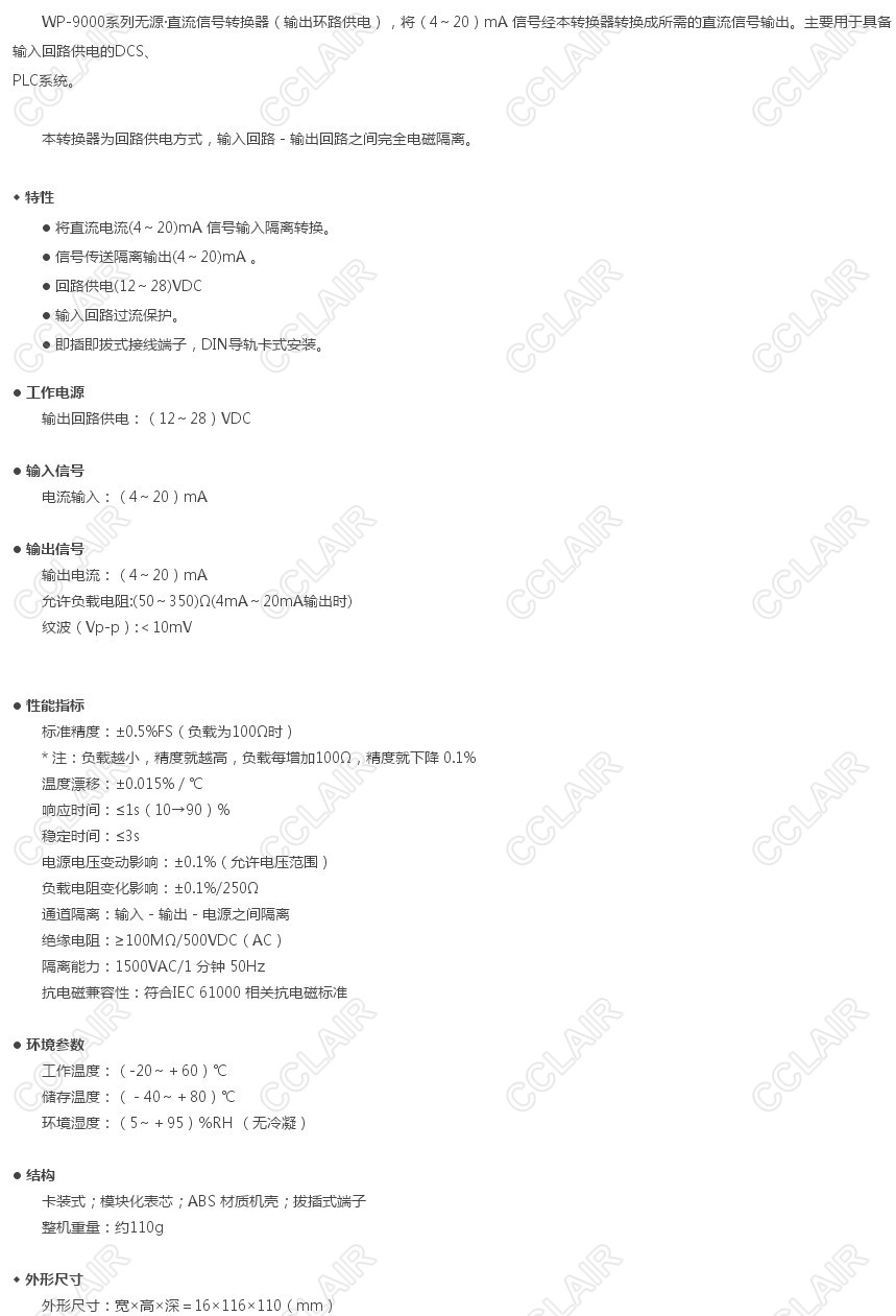 WP-9054,WP-9055,無源直流信號轉(zhuǎn)換器(輸出環(huán)路供電)