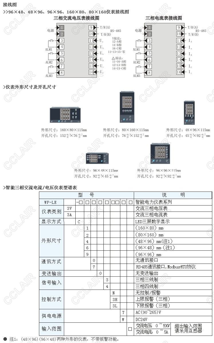 WP-LE3V-C1,WP-LE3A-C1,WP-LE3V-C2,WP-LE3A-C2,智能三相交流電流/電壓儀表