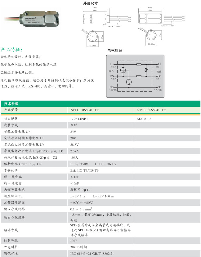 NPFL-3SSS241-Ex,NPFL-3ISS241-Ex,現(xiàn)場(chǎng)安裝型浪涌保護(hù)器(串聯(lián))