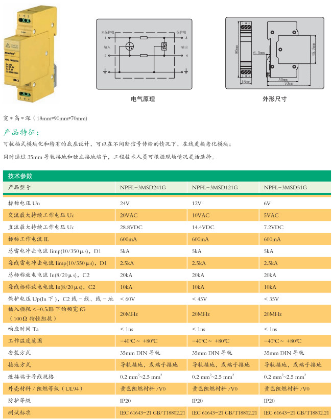 NPFL-3MSD51G,NPFL-3MSD241G,NPFL-3MSD121G,二線制接地型信號(hào)浪涌保護(hù)器