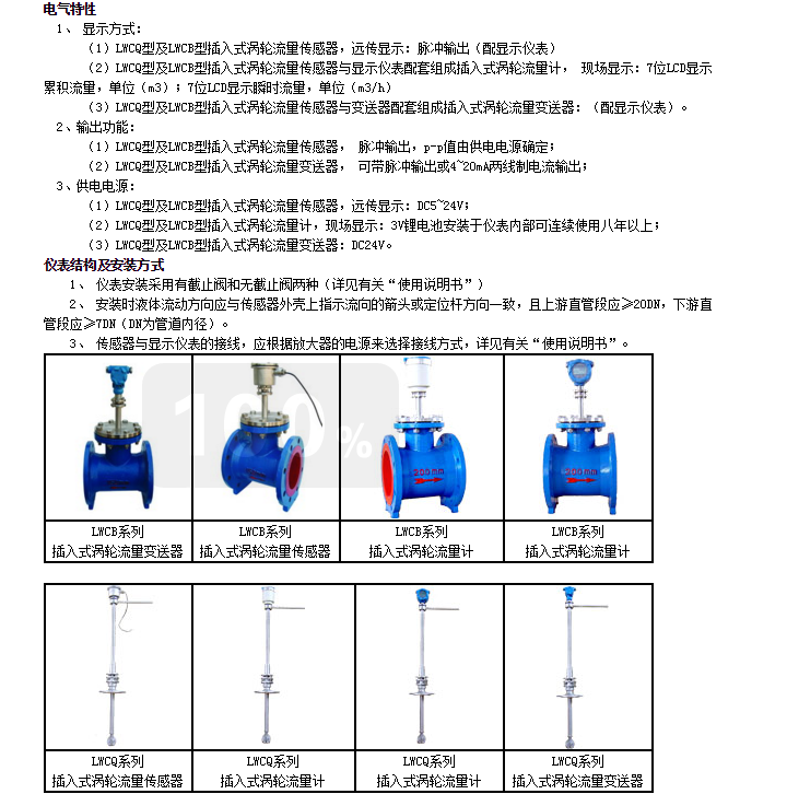 LWCQ-100*,LWCQ-150,LWCQ-200,LWCQ≤400*,LWCQ≤800,LWCQ>800*,插入式渦輪流量流量計(jì)