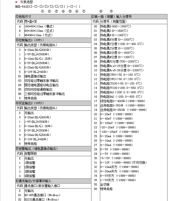型號(hào): NHR-5400A-55-0/0/2/X/1P(24)-A,NHR-5400C-27-K3/X/X/D1/X-A,自整定調(diào)節(jié)器