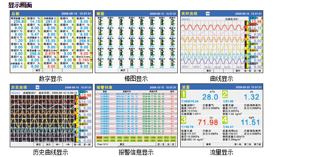 示),歷史曲線顯示,信息顯示(報警信息、累積報