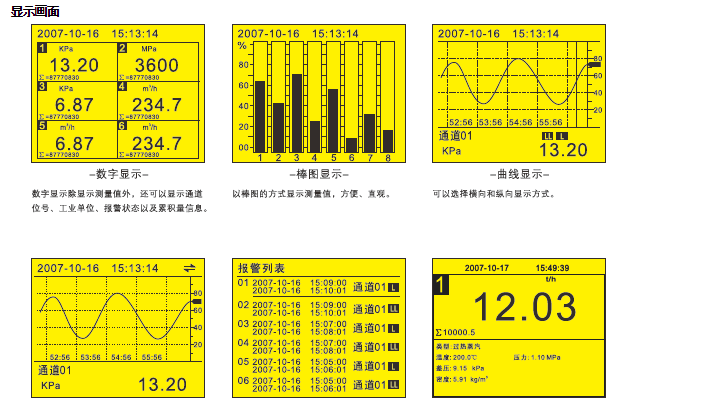 ◎同時指示各路通道的下下限、下限、上限、上上限報警。可以記錄并顯示最近的15條報警信息;