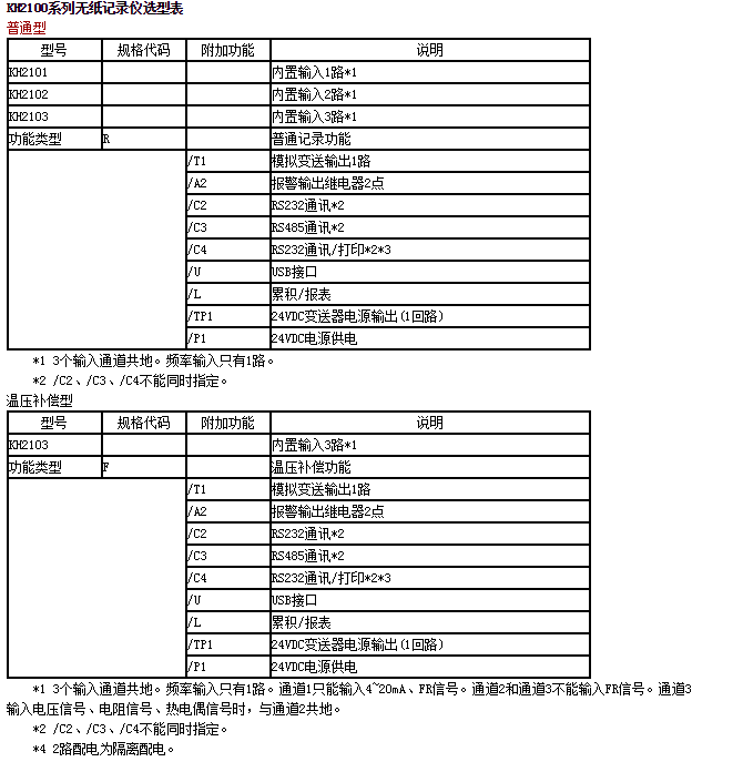 KH2100系列3通道輸入單色無(wú)紙記錄儀,可輸入標(biāo)準(zhǔn)電流、標(biāo)準(zhǔn)電壓、頻率、毫伏、熱電偶、熱電阻等信號(hào)。具有傳感器隔離配電輸出、繼電器報(bào)警輸出、變送輸出、流量積算、溫壓補(bǔ)償、歷史數(shù)據(jù)轉(zhuǎn)存、打印以及遠(yuǎn)程通訊功能。