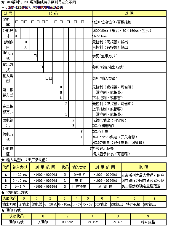 SWP-LED液位/容積控制儀可對各種形狀罐體進行液位<=>容積轉(zhuǎn)換測量控制。