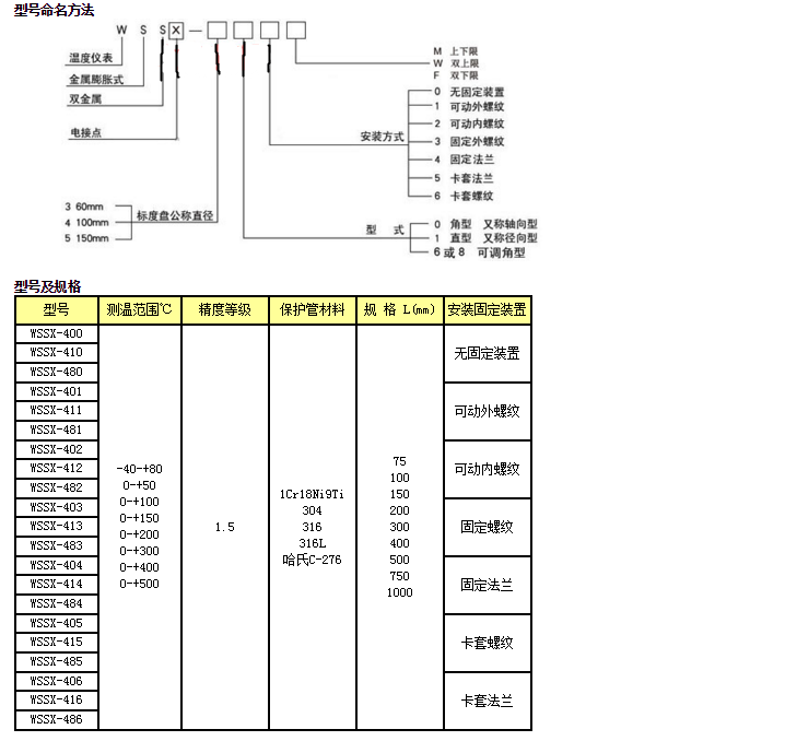 WSSX-402,WSSX-400,WSSX-404,WSSX-485,雙金屬溫度計(jì)
