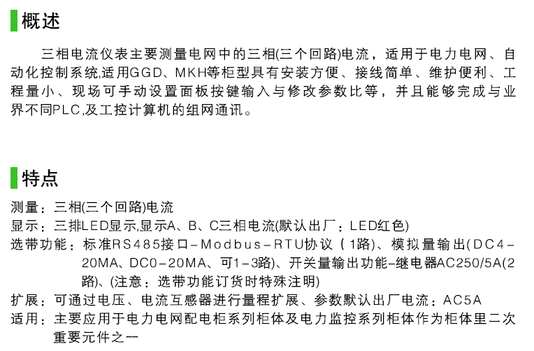 二、數(shù)顯三相電流表產品特點