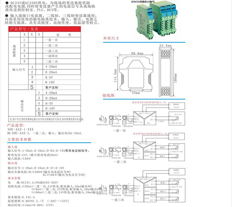 SOC-AA2-1信號分配器  配電電源DC24V、卡規(guī)/導軌安裝