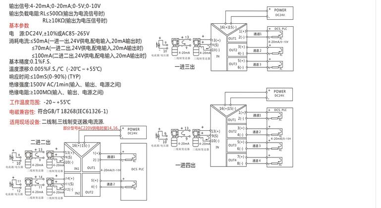 輸入輸出方式:一入一出、一入二出、一入三出、一入四出、二入二出輸出范圍:0-10V、4-20mA、0-20mA、0-5V等用戶需要的標(biāo)準(zhǔn)信號