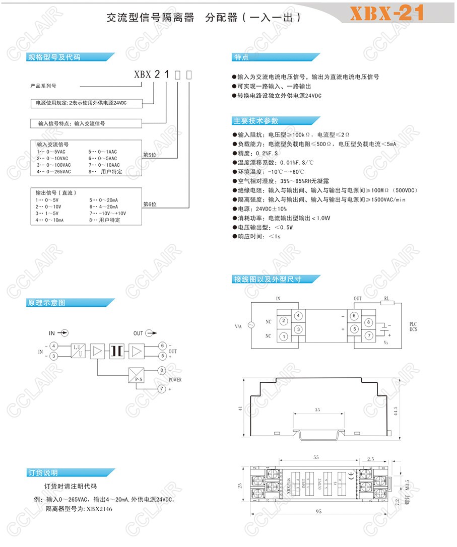 XBX-21,XBX-21-22,XBX-21-33,XBX-21-44,交流型信號隔離器、分配器(一入一出)