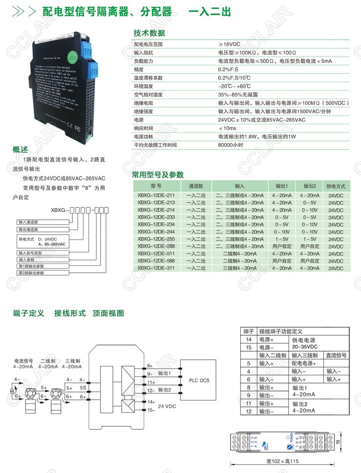 XBXG-12DE,XBXG-12DE-211,XBXG-12DE-213,XBXG-12DE-214,配電型信號隔離器、分配器(一入二出)