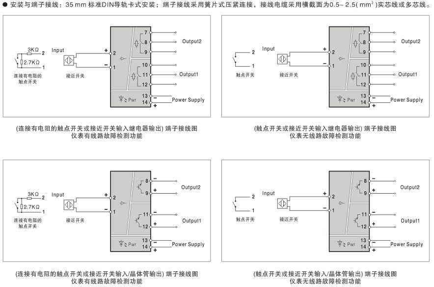 可選擇帶有輸入線路故障檢測功能的開關(guān)量輸入隔離器和沒有線路故障檢測功能的開關(guān)量輸入隔離器。