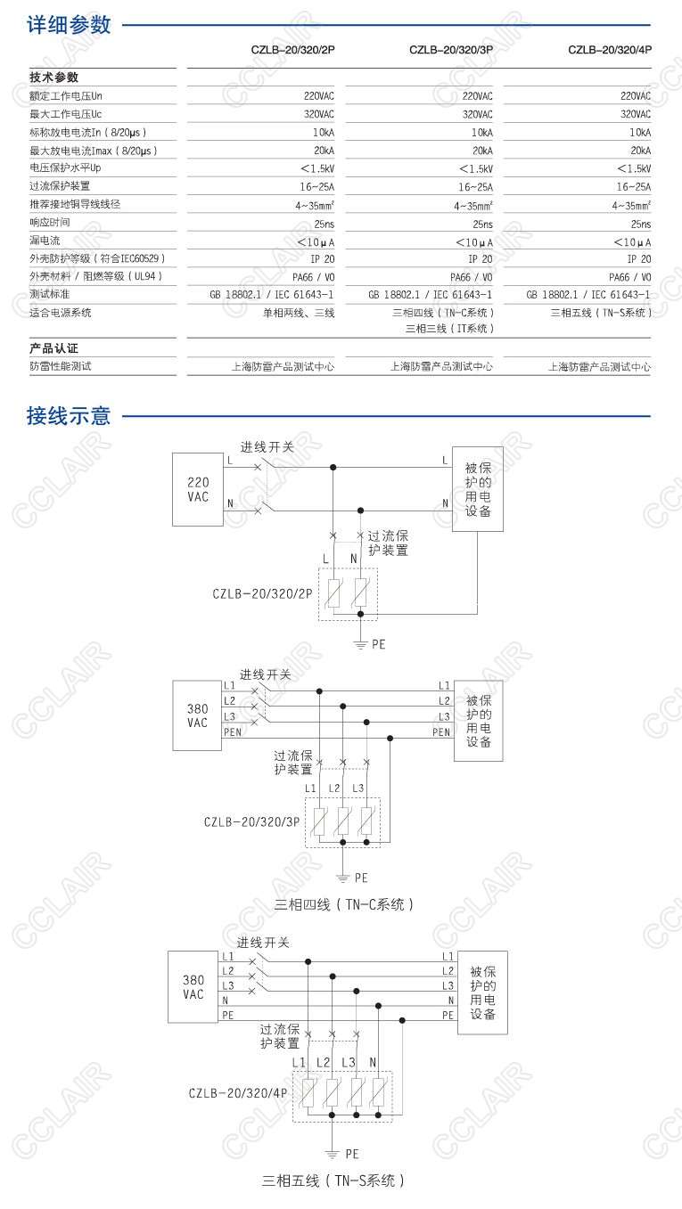 CZLB-20/320/3P 交流電源型SPD(20kA)