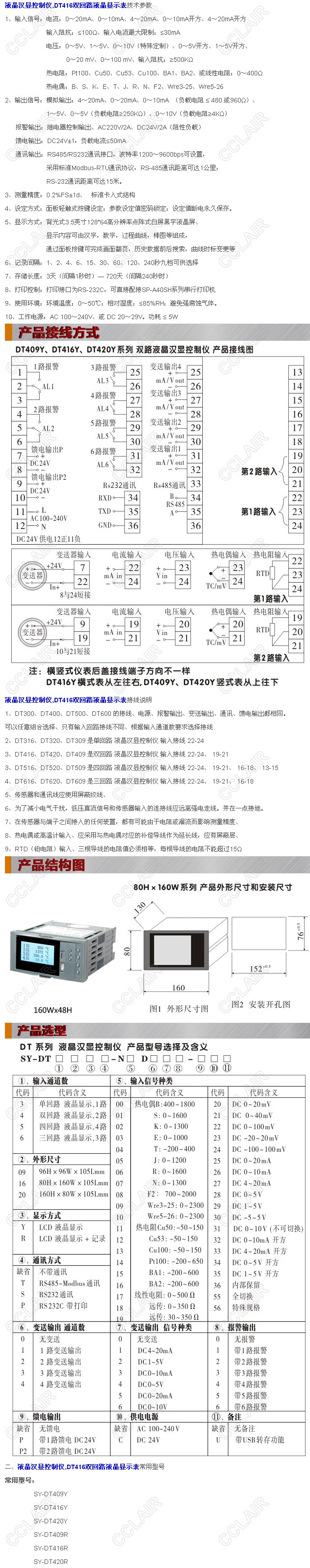 SY-DT416Y,SY-DT416R,SY-DT416YT,SY-DT416RT,SY-DT416YS,DT416雙回路液晶顯示控制儀