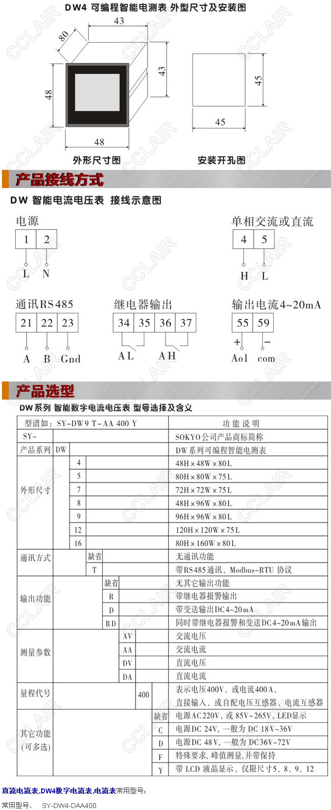 SY-DW4-DA400,SY-DW4-DA400C,SY-DW4-DA400D,DW4-DA400,DW4-DA400C,DW4數(shù)字電流表