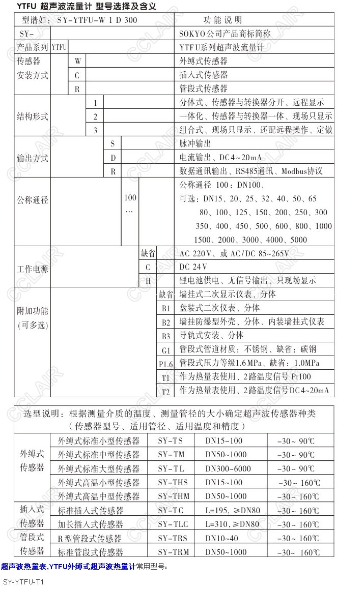 SY-YTFU-T1,SY-YTFU-W1S50,SY-YTFU-W1S100,SY-YTFU-W1S150,YTFU外縛式超聲波熱量計(jì)