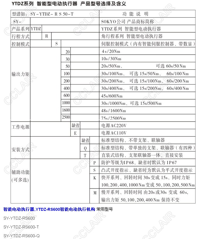 SY-YTDZ-RS600,SY-YTDZ-RS600-T,SY-YTDZ-RS600-Q,YTDZ-RS600智能電動執(zhí)行機構