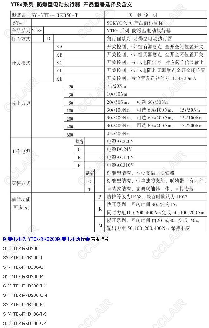 SY-YTEX-RKB200,SY-YTEX-RKB200-T,SY-YTEX-RKB200-Q,YTEX-RKB200防爆電動執(zhí)行器