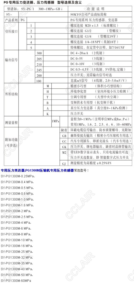 SY-PG1300M-0.25MPa,SY-PG1300M-0.4MPa,SY-PG1300M-0.5MPa,PG1300M壓縮機(jī)專用壓力傳感器