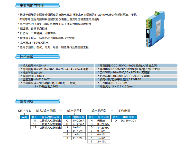 KR-PR-D, KR-PR-D11,KR-PR-D12,KR-PR-D22,信號(hào)隔離配電器