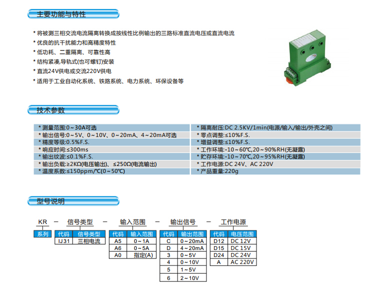 KR-IJ31,KR-IJ31-A5,KR-IJ31-A6,KR-IJ31-A0,三相電流隔離變送器