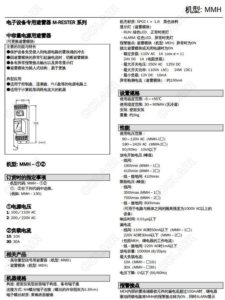 MMH-110/MMH-130/MMH-210/MMH-230,最大負載10A、30A 可更換元件避雷器