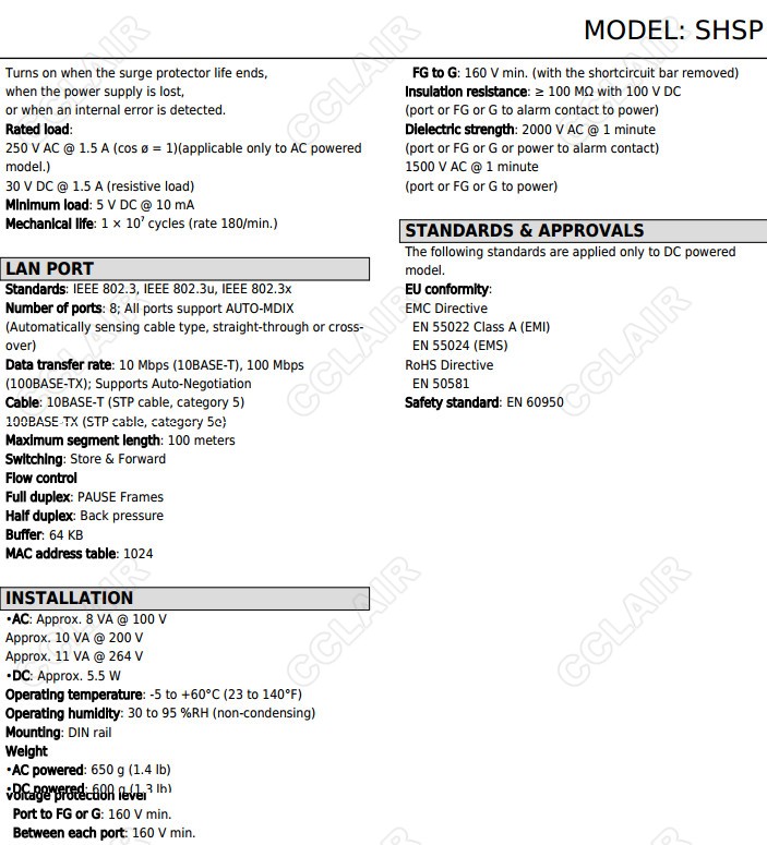 SHSP(CE標準),SHSP-1-M2/N,SHSP-1-M2/CE,帶防雷功能 8端口防雷集線器SHSP-1-R/N,SHSP-1-R/CE,