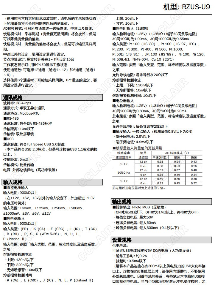 RZUS-U9,RZUS-U9T/MSR,12點萬能模擬量信號輸入