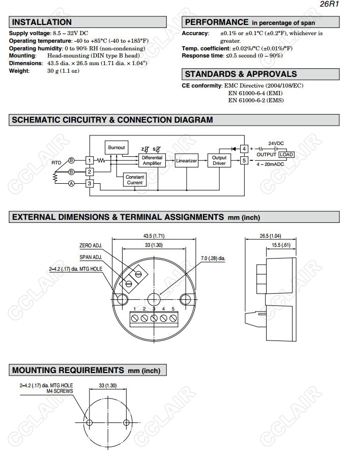 26R1,26R1-1,26R1-3,26R1-4,26R1-0,熱電阻信號變換器