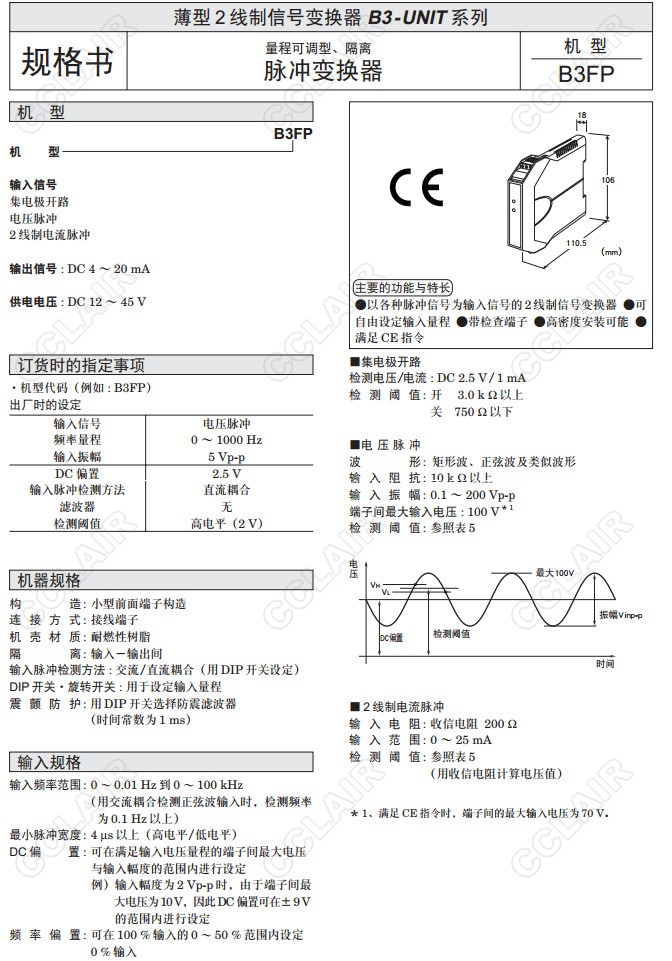 B3FP脈沖變換器(量程可調(diào)型、隔離)
