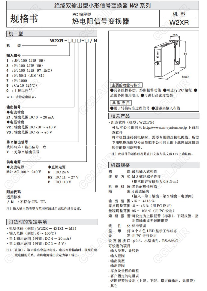 W2XR,W2XR-1,W2XR-3,W2XR-4,W2XR-5,W2XR-7,W2XR-9,W2XR-0,W2XR-4Z1Z1-M2熱電阻信號(hào)變換器(PC編程型)