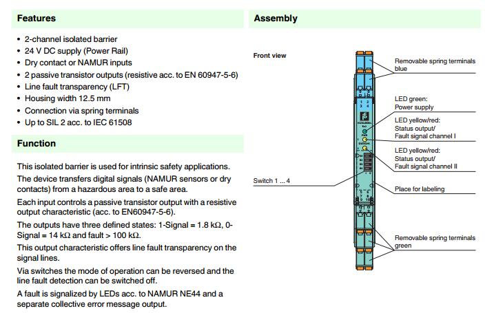 KCD2-SON-Ex2.SP,開關(guān)量輸入安全柵