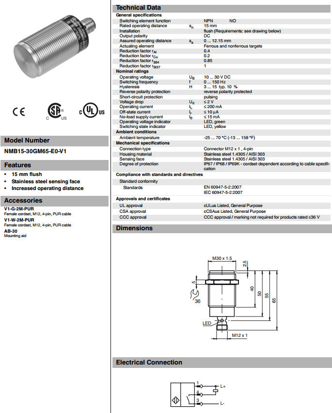 NMB15-30GM65-E0-V1電感式接近開關(guān)
