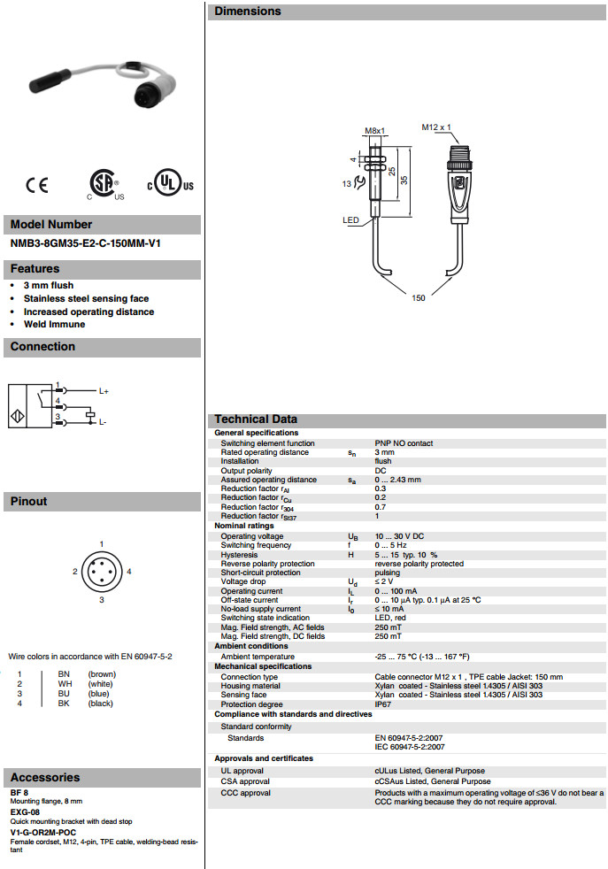 NMB3-8GM35-E2-C-150MM-V1電感式接近開關(guān)