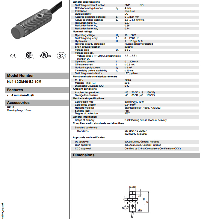 NJ4-12GM40-E2-10M,電感式接近開關(guān)