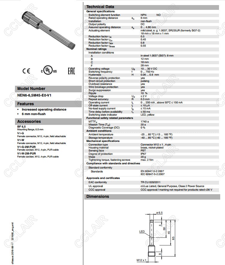 NEN6-6,5M45-E0-V1,電感式接近開關(guān)