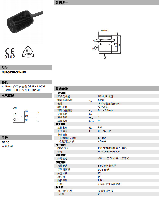NJ5-30GK-S1N-5M電感式接近開關(guān)