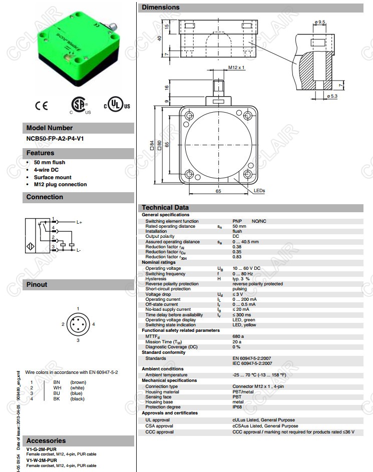 NCB50-FP-A2-P4-V1,電感式接近開關