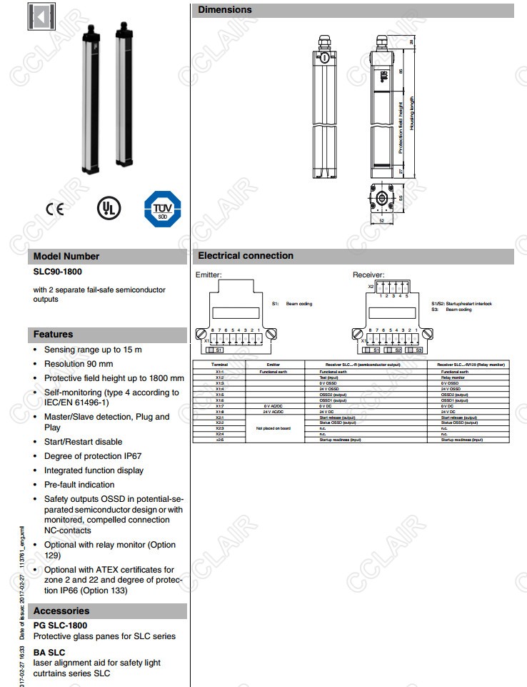 SLC90-1800,SLC90-1800-S,SLC90-1800/31,SLC90-600,SLC90-600-S,安全光柵