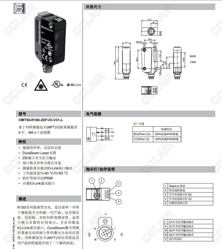 OMT100-R100-2EP-IO-V31-L,OMT50-R100-2EP-IO-V31-L,距離傳感器